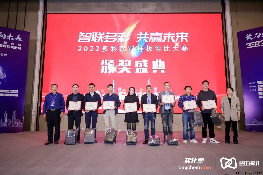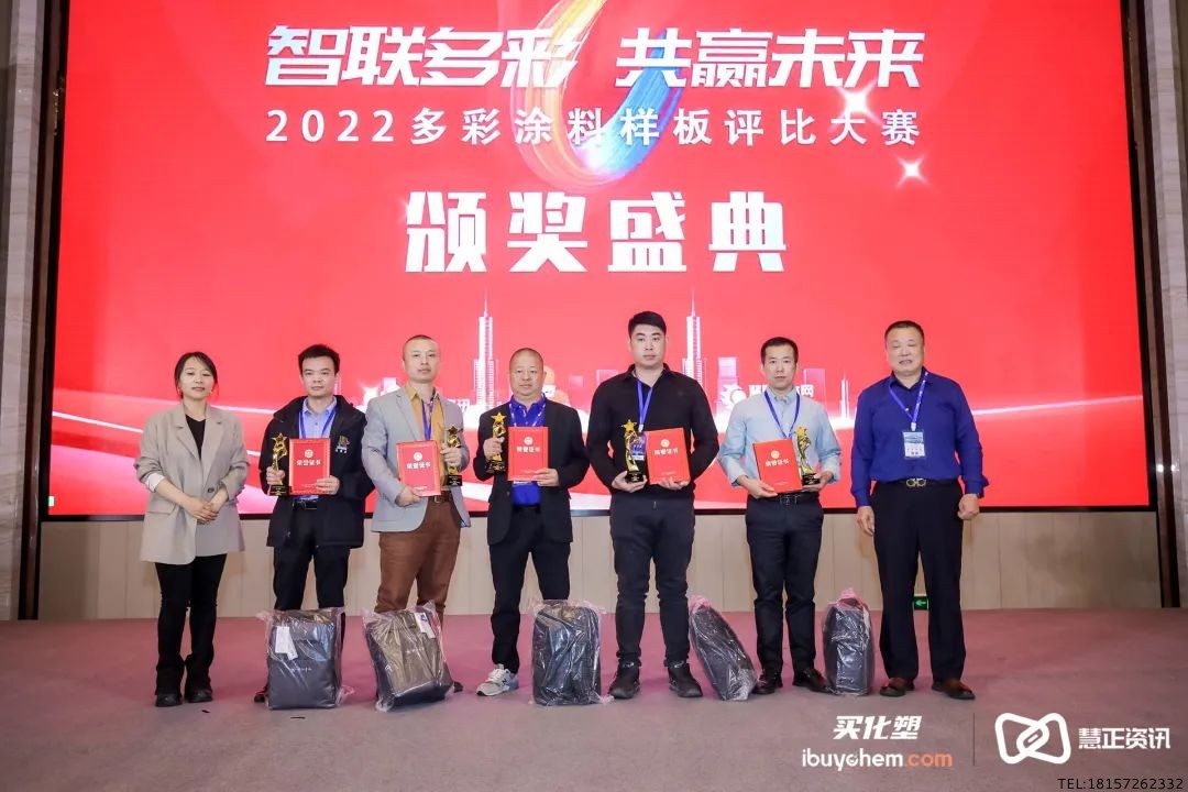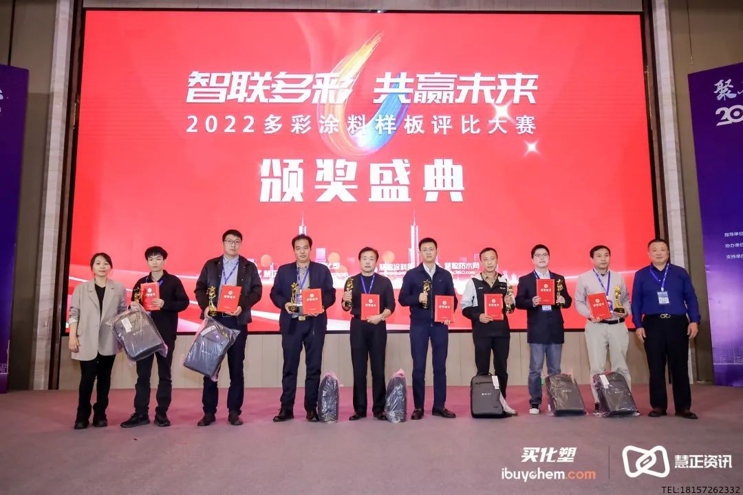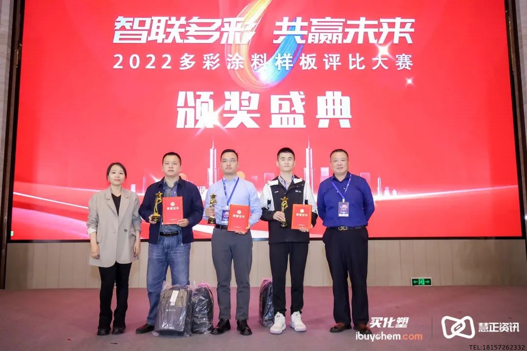 在大會同期舉行的2022多彩涂料樣板評比大賽頒獎盛典上,浙江豐虹新材料股份有限公司董事副總裁張才龍為獲獎工程師頒發(fā)獎杯和證書,獲獎工程師可獲得豐厚的研發(fā)基金和豐虹特約支持的禮品。