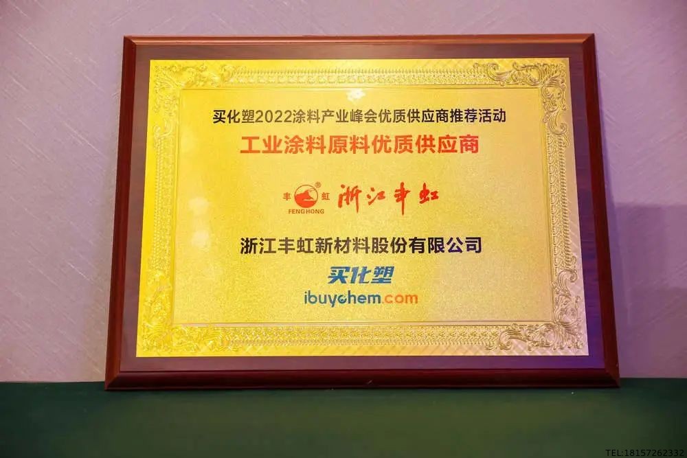 在本屆峰會期間,豐虹憑借優(yōu)異的產品質量、快速的服務響應、全面的技術保障和穩(wěn)定供應鏈支持,在眾多涂料企業(yè)采購總監(jiān)和技術總監(jiān)的專業(yè)評審中脫穎而出,榮獲“工業(yè)涂料原料優(yōu)質供應商”獎項。
